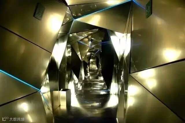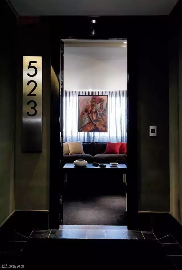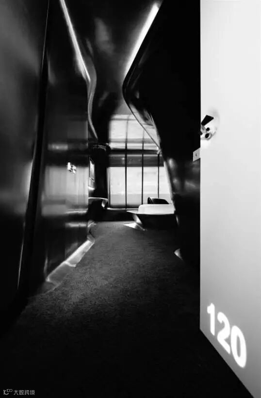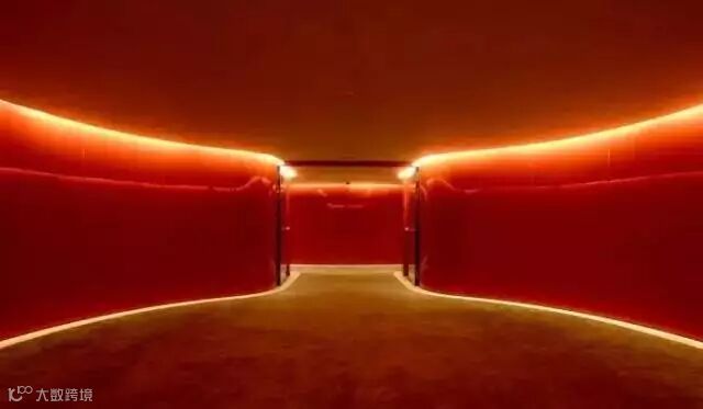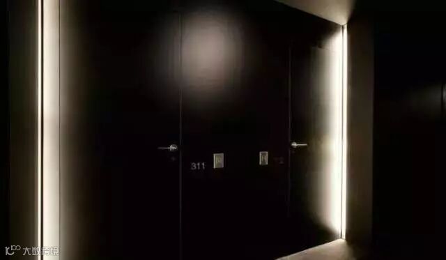 通体黑色的走廊传达出一种深邃与私密的感觉,