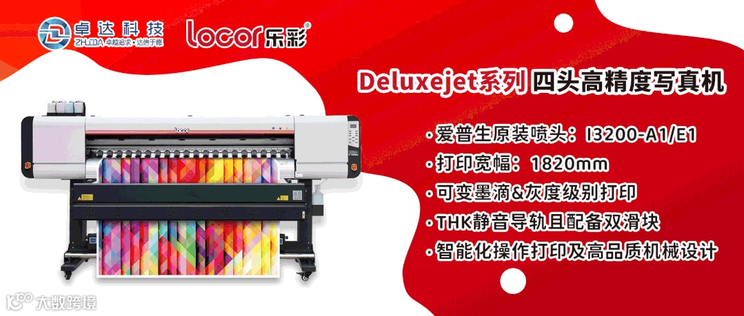 乐彩Deluxejet1840U四头写真机,作为一款中高端写真机,采用爱普生3200喷头,最大的打印宽度可达1820mm,具有打印速度快、精度高、经久耐用等优点。