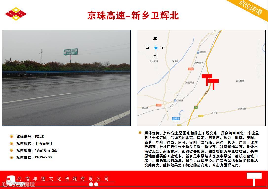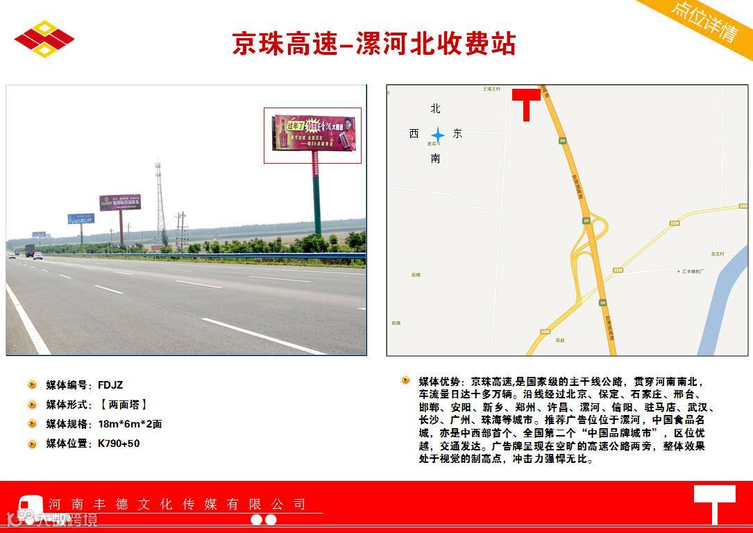 小雪过,感恩来!临近年关,恰逢走亲访友的黄金时节,来往高速上人流量和车流将至暴涨状态,绝佳广告机会不容错过。你还在等什么?是不是在为找不到绝佳的广告位而苦恼发愁呢?是不是再为公司的产品市场得不到推广而茶饭不思呢?何以解忧-唯有丰德!现我公司特推出黄金广告媒体路段及位置供各位选择,具体详情如下,如有需要敬请预览,机会不容错过!把握现在,赢在未来!