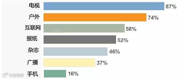 从上图中我们不难看出,户外广告的受众触达率仅次于电视媒体。这就表明,户外广告有望以较少的成本创造较大的曝光。