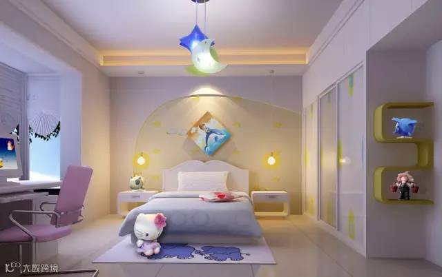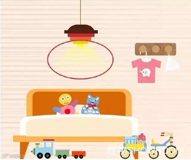 儿童房的灯光一黄色或其他暖色调为宜,尽量不要用白光灯,这样能保护他们的视力。