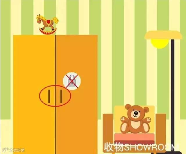 带门的柜子,尤其是柜门比较大的衣柜,要选择开启方便的,不能带自动锁,避免孩子把自己锁在里面。柜子、抽屉等家具一定要做防夹手设计,儿童柜门的关闭方式请配有阻尼缓冲装置,保护孩子的安全。