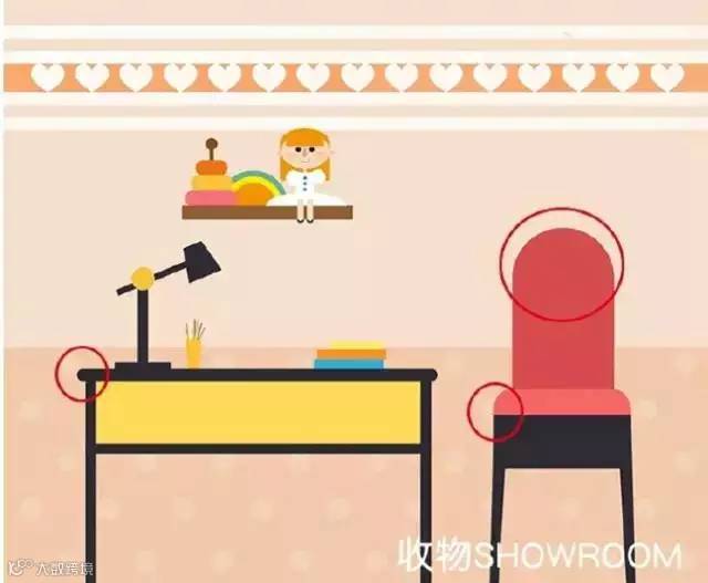 房里包括桌子在内的所有家具,最好都能选择圆角的,如果已经买了方角的,那么也应该包一个圆角,避免磕碰。