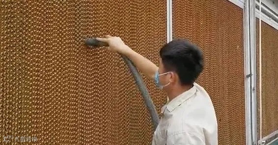 当水帘经历了春、秋、冬三个季节的风吹日晒,粉尘、飘絮物、羽毛等杂物往往会堵塞风口,大大降低水帘的有效进风面积,进而影响风速和水帘的降温效果。