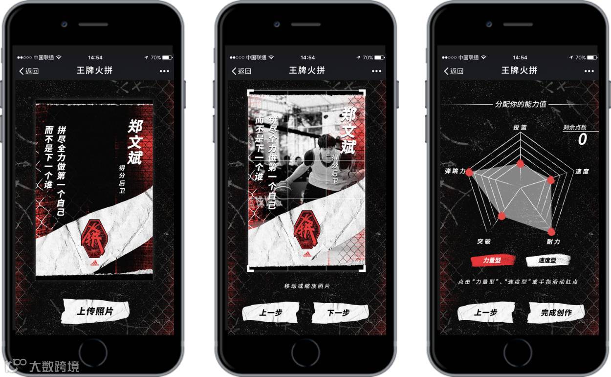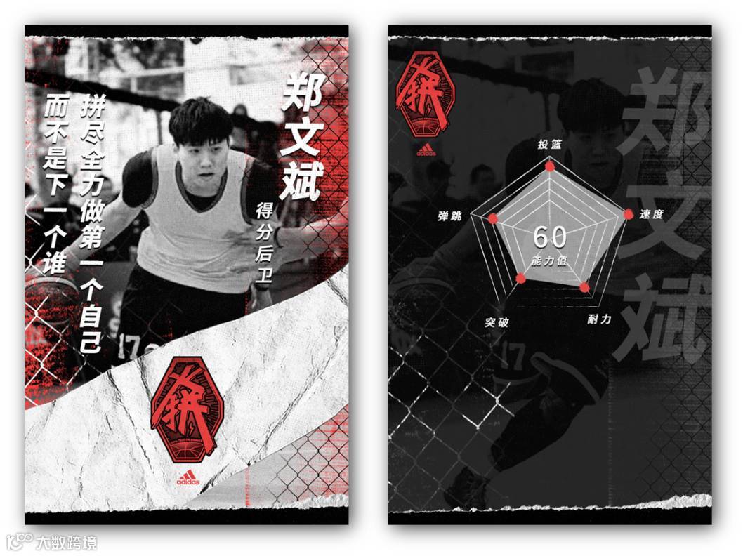 同时,广大篮球爱好者们也可在线上传自己的照片,输入基本信息并设定能力值,生成属于自己的原创卡。作为球员身份专属象征的数字球星卡,不仅能通过社交媒体与亲友分享,更与球友展开王牌火拼,获得能力升级,持续解锁新的球星卡和adidas装备卡。