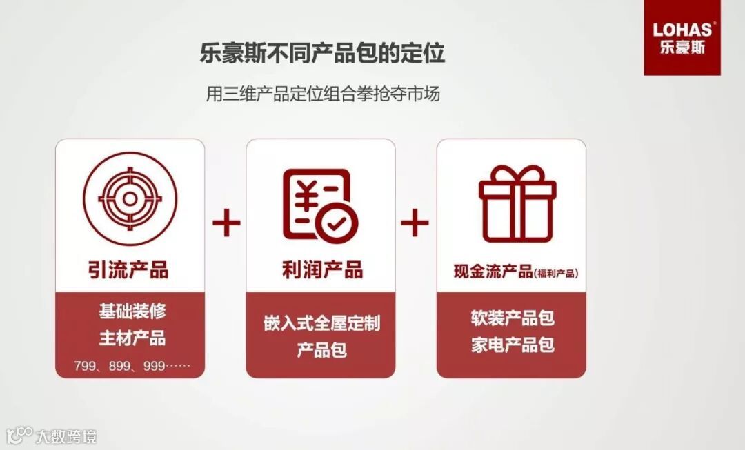 去年, 我们针对现有的行业痛点和用户需求展开创新探索,开发不同整装产品包,全面覆盖毛坯、精装、翻新、局装市场。开发产品包的意义是为了提升整体到店转化率。我们为此做了一个产品包的矩阵,它涵盖整装产品、木作产品包、嵌入式全屋定制包、软装家具包、家具包、厨卫局装包、卫浴产品包,基于产品包的五级客户过滤系统,尽最大程度提高客户到店转化率。让不同的客户群体在乐豪斯都能找到自己所需要的,满足个性化的装修需求。
