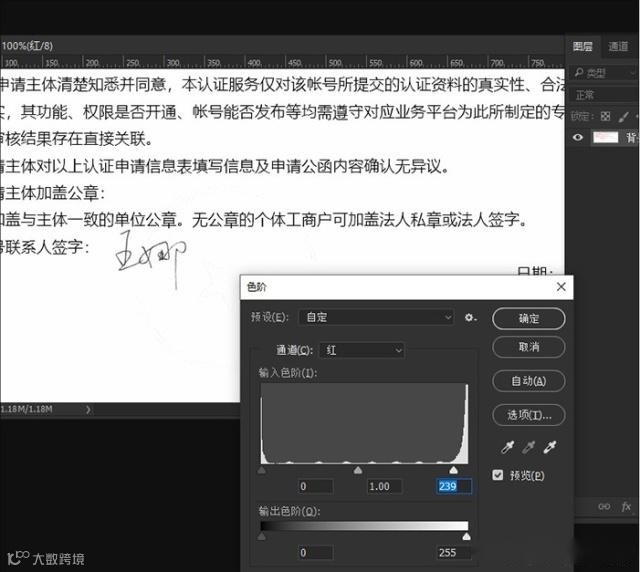 推荐操作:最后按下Ctrl+L,打开色阶,将其中的高光滑杆向左稍微挪动,直到图章完全看不到为止。再点击“文件”>"储存"或者按快捷键“ctrl+s”点击保存,选择好位置后点击“保存”,然后再弹出来的对话框里再点击确定就可以了