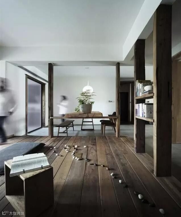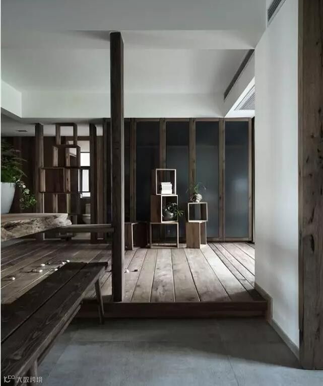 采用朽(旧)木头对空间进行表达,