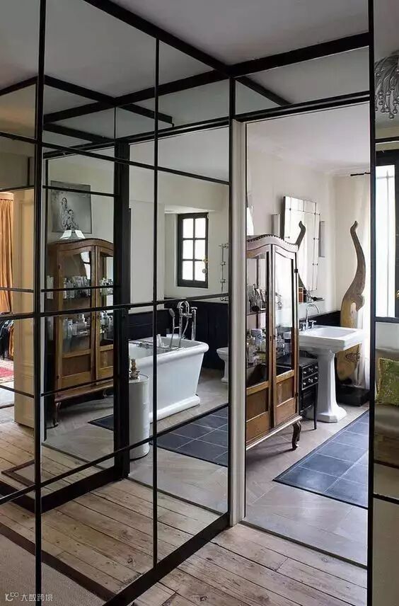 整面墙的大镜子可以帮你化解不规则空间的尴尬,