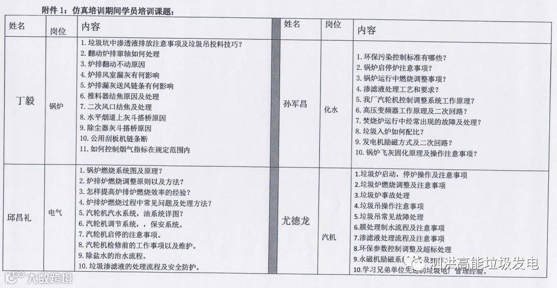 5、根据重庆三峰卡万塔安排,7月7日下午安排到垃圾电厂参观,结合实物进行感性培训;