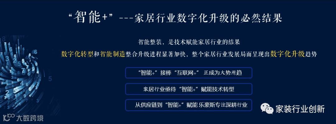 智能整装,是技术赋能家居行业的结果,数字化转型和智能制造整合升级进程显著加快,整个家居行业发展局面呈现出数字化升级趋势,成为家居行业生态链上游必须涉足智能整装。