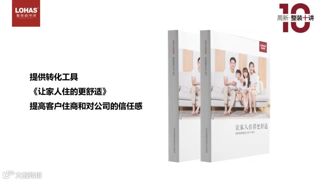 书的内容不仅仅是为了提高客户的住商,还让客户感受到我们的专业性,感受到我们所设计方案完全是为了客户着想,增强信任感。而且乐豪斯能够将书中所有的细节进行落地,其他公司即便将书买回去也无法落地,因为没有产品体系的支撑。