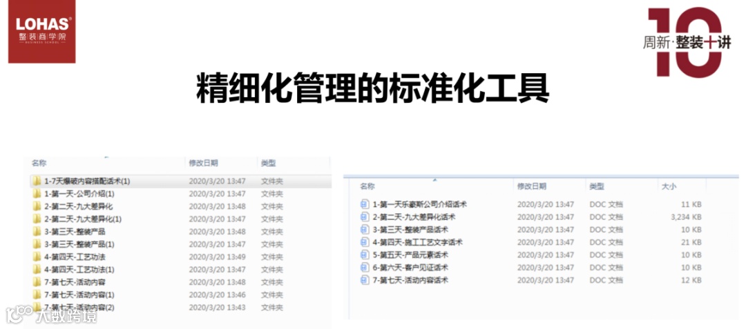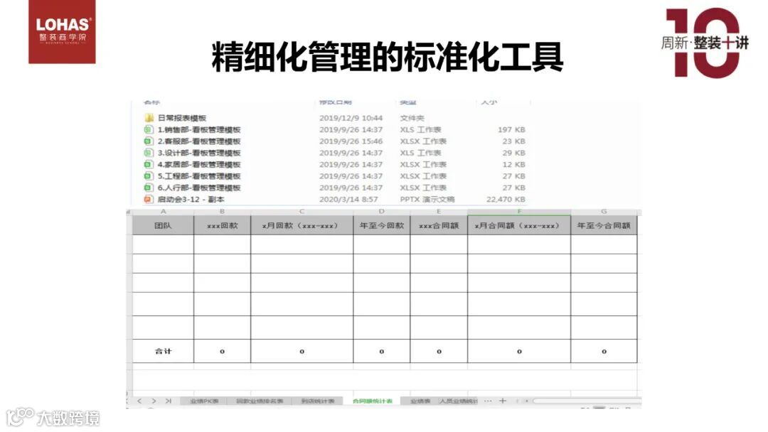 除了分工之外,还需要精细化管理的标准化工具,乐豪斯是研究产品的,所以对产品细节以及工具细节都是格外看重的,这也是我们乐豪斯的基因和理念。我们针对各个岗位的看板管理,制作了成套的模板工具。我们也会将工具输送给加盟商伙伴提供使用。