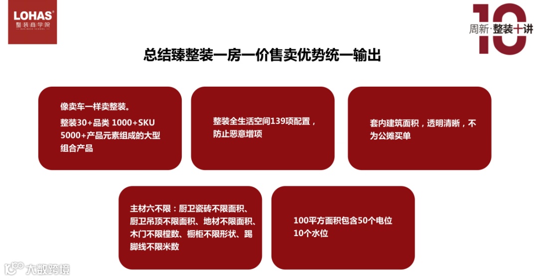 所有部分透明化,通过这些方式将整装产品变为标准化产品,让客户放心,使一次到店一次签约变得更加容易。这都是整个体系所导致的结果