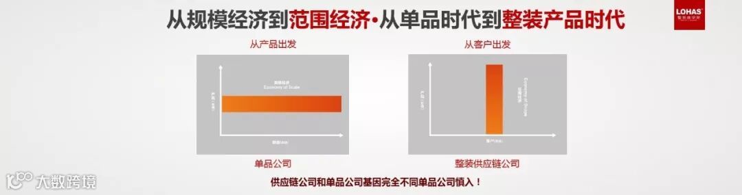 所以,从产品时代到整装产品时代,基因完全不同,单品公司慎入。单品公司以产品为基点,但整装公司从客户需求出发,这是两种完全不同的基因和思维模式。单品公司到底如何拥抱整装?加入一个整装生态系统是全新的机会。整装公司现在卖家居卖得越来越好,家居公司应该加入整装供应链形成共生的突破。