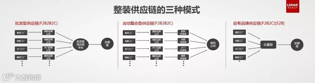 这三种供应链的优势各不同。批发型供应链在当地整合供应链出现问题的时候,因为中间环节多,对产品没有控制,整装的产品稳定性不够。如果供应链不能复制,公司就不能复制,而且目前品牌公司只是把品牌低端货卖给公司,最终批发型公司只能靠打价格战竞争。自由品牌供应链在整合工厂之后完全从客户出发,优势非常多。
