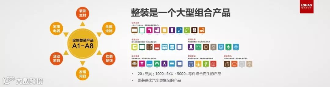 整装实际上是靠组材组合起来的产品,所以它的整个品类非常繁杂,大概需要20多个品类产品,里面含有1000多个SKU,分散组合,因为客户的家是不同的分布。整装是比汽车行业更复杂的行业,汽车供应链已经非常复杂了,而整装供应链更复杂。