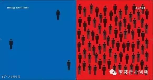 乐装天下整装平台华裔设计师刘扬曾经在2007年出版了《东西相遇》一书,引起巨大反响。该书用简洁的笔画,用简单明了的图画向读者表现了德中两个社会的细节,比如两国家庭对待孩子的态度,人们旅游的方式,双方的审美观等等。红色代表中国,蓝色代表德国,简洁而又形象的画面轻松幽默地展示了东西文化差异。