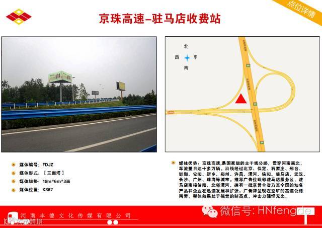 京珠高速 驻马店收费站 K867路西(三面塔)