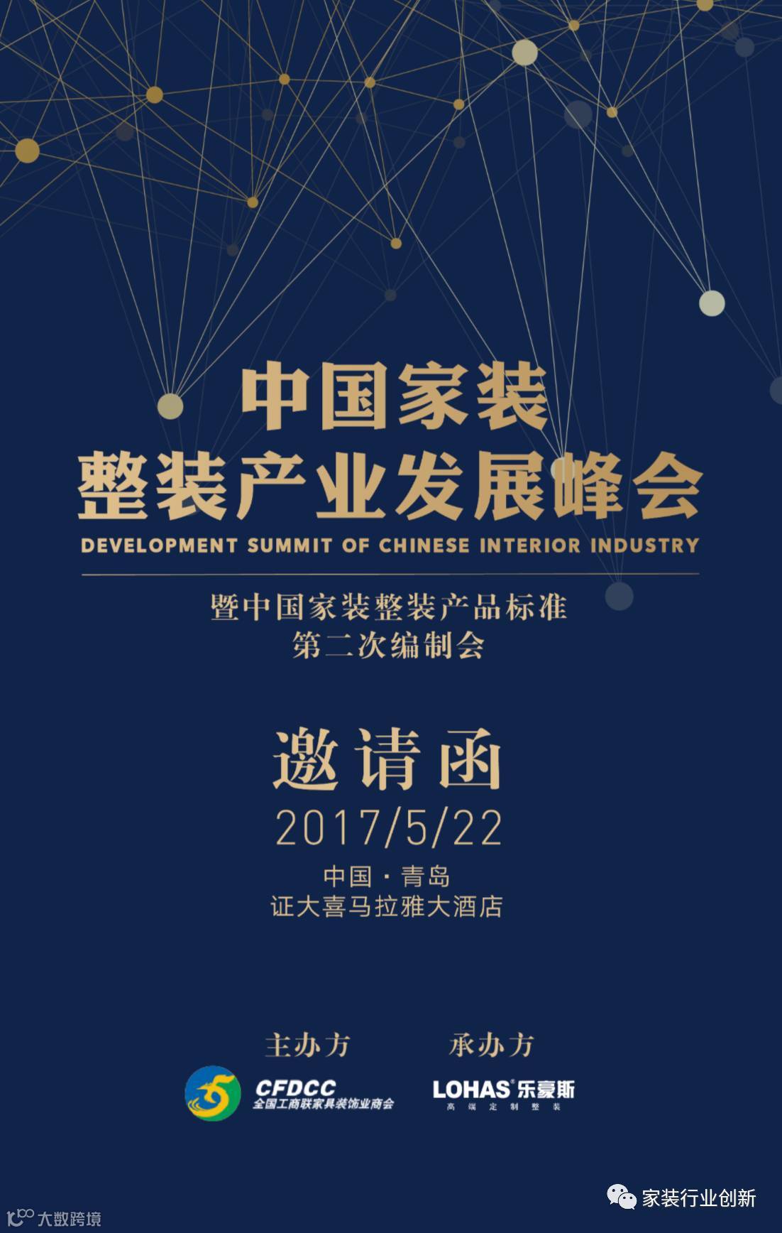 5月22日,中国家装整装产业发展峰会将在青岛喜马拉雅酒店隆重召开,本届大会由全国工商联家具业装饰商会及国家建筑材料测试中心主办,乐豪斯装饰承办。届时,中国最顶尖的整装企业及国内外知名材料品牌、地产商嘉宾共同出席,这是史上最全最聚焦的整装产业链峰会!