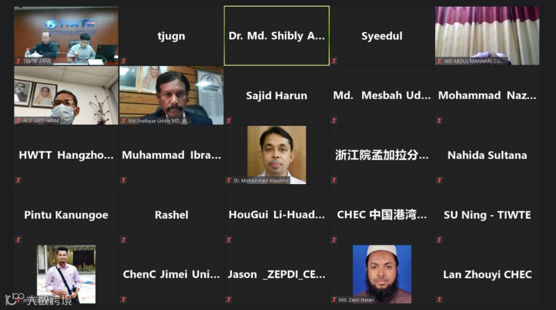 此次会议以线上视频形式举行,围绕港口海岸开发建设、水资源利用与饮用水安全保障等主题开展技术交流与讨论。孟加拉国内陆水运局、规划委员会项目司、电力发展局、吉大港港务局、达卡工程技术大学及中国的中交港湾、浙江电力院等中资企业的专家和代表近100人参加会议。