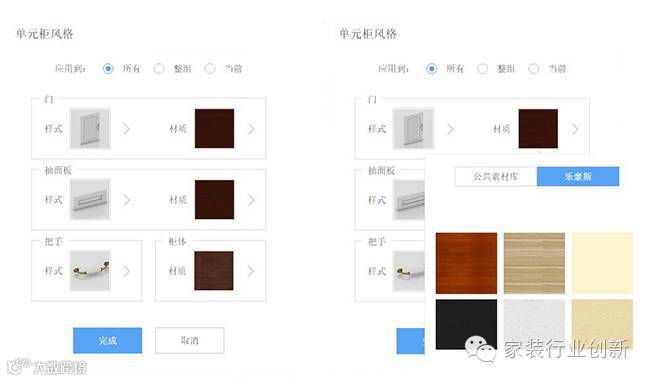 可以快速看到不同拉手和材质搭配的效果,所见即所得。