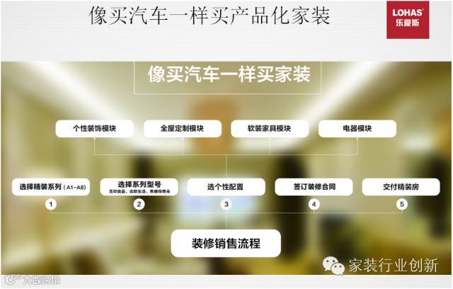 我们提出了“像买汽车一样买家装”的理念,并根据客户族群开发出了类似奥迪汽车的A1-A8的拎包入住精装产品。