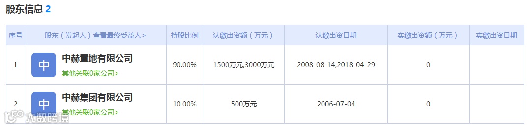 据企盾宝资料显示,万柳书院楼盘关联开发商为中赫置地投资控股有限公司,成立于2006年7月10日,注册资本为5000万元,公司法人代表为孙鹏。