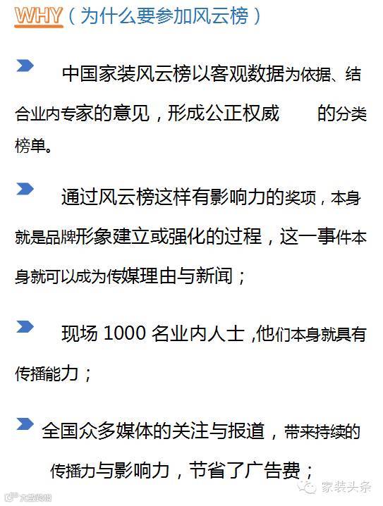 “2015中国家装风云榜”坚持“媒体创建平台、企业积极参与、专家客观评判、市场高度认可”的原则,旨在为行业的先行者提供展示风采的舞台,评选行业标杆,激励中国家装行业的发展。