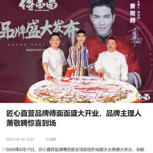 距离萧敬腾跨界美食圈已经过去一年,他坦言生意还不错。“每天有差不多三百单生意,还可以吧。”当初在成都开店,萧敬腾是因为喜欢吃面,尤其是喜欢吃成都的面。“成都人喜欢吃面,对面比较挑剔。所以我们选在成都开了第一家店,也没有急着去外地扩张,先把基础打好。”