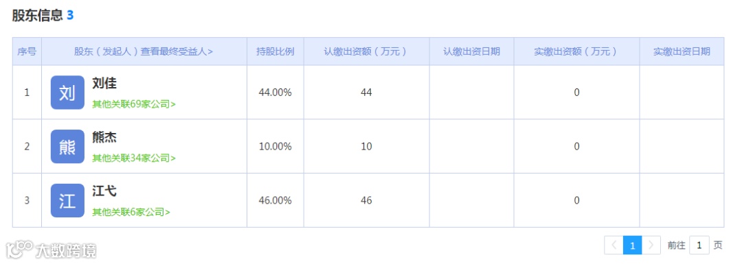 通过股权穿透功能,可以看到,四川至膳一共有三个股东:江戈、刘佳、熊杰,分别占股46%、44%、10%。