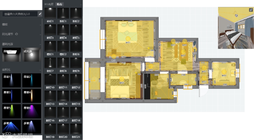 可根据自己所需自定义灯光