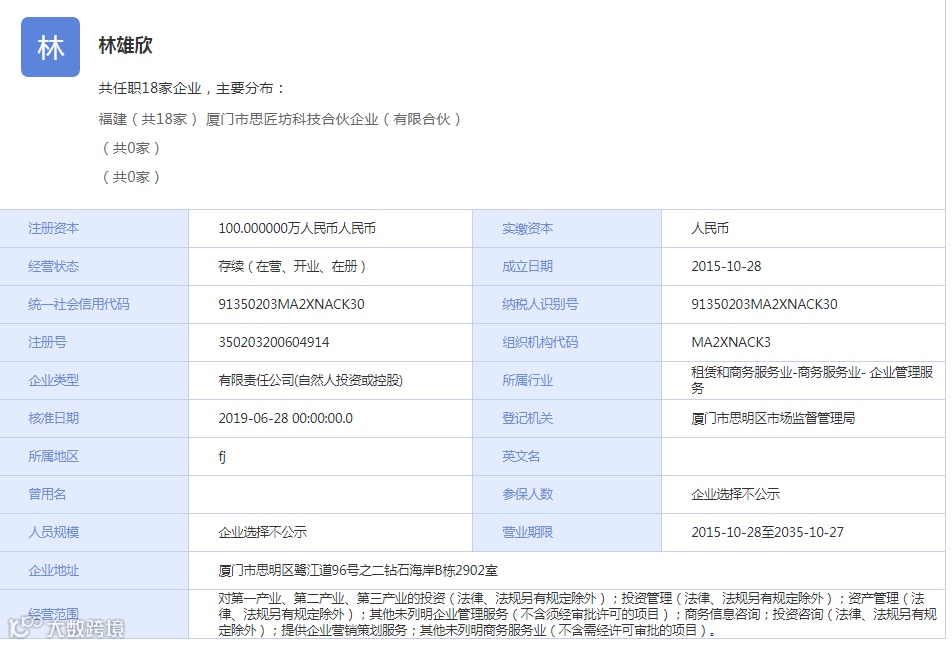据企盾宝资料显示,与酒店名称、位置、实控人相符合的公司为东山县海席酒店有限公司成立于2021年1月,注册资本为1000万元人民币;股权穿透显示,该公司由厦门市思奔投资有限公司和自然人林惠龙共同投资,持股比例为99%和1%。 而厦门市思奔投资有限公司成立于2015年10月,旗下经营苏小糖商贸、一片树叶酒店、拾座饮宴等多个品牌,涉及餐饮、旅游、文娱等多个领域。 开业一年才注册公司,注册公司不到一个月即遭关停,渔排酒店的命运可谓多舛。