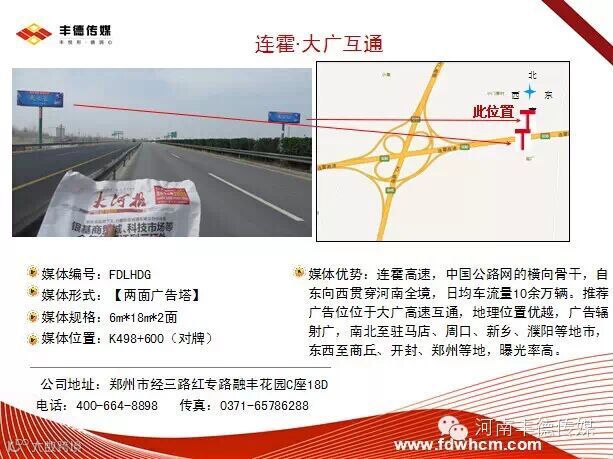 导读: 媒体编号:FDLHDG媒体形式:【两面广告塔】媒体规格:6m*18m*2面媒体位置:K498+600