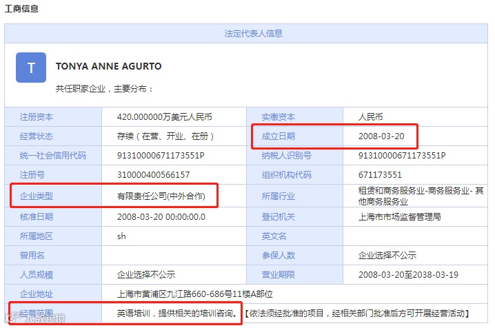 据企盾宝了解,迪士尼英语是由华特迪士尼公司直营的培训品牌,专为3-12岁的孩子提供一流的英语培训服务。该公司全称为华特迪士尼英语培训(上海)有限公司,该公司于2008年3月20日成立,注册资本420万美元,经营范围为英语培训,提供相关的培训咨询。