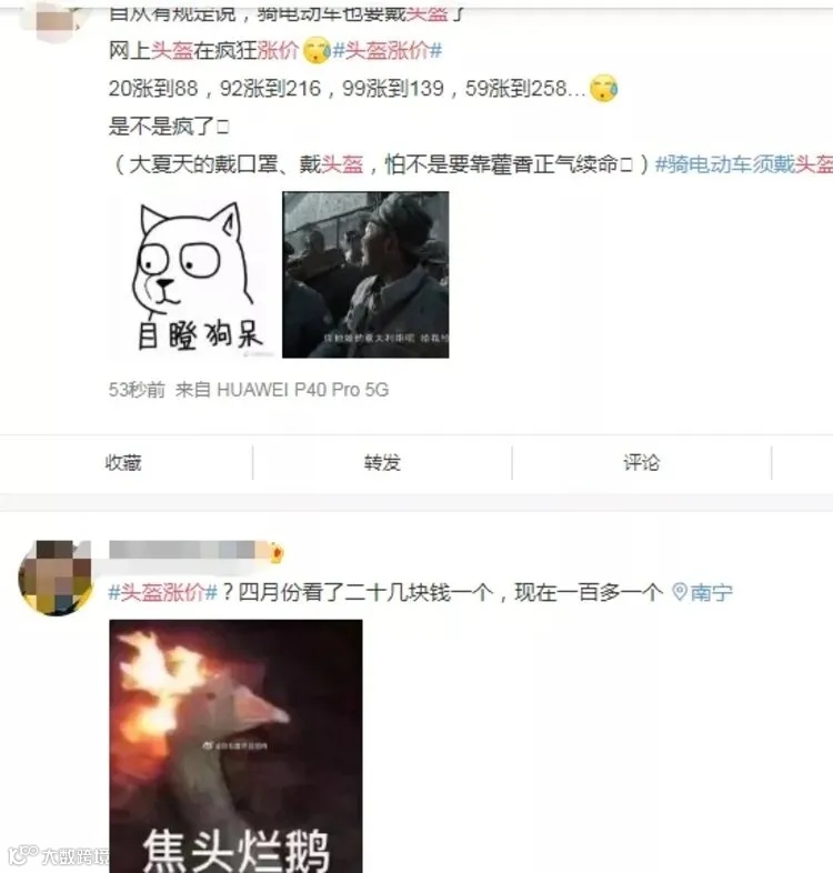 江苏南通市场监管局5月19日发文表示,就近期南通市部分地区出现头盔货源紧张、价格大幅上涨的情况,对全市头盔生产、经营者及相关单位进行提醒告诫,表示将加大对头盔价格的监管力度,依法查处价格违法行为。