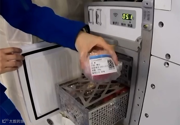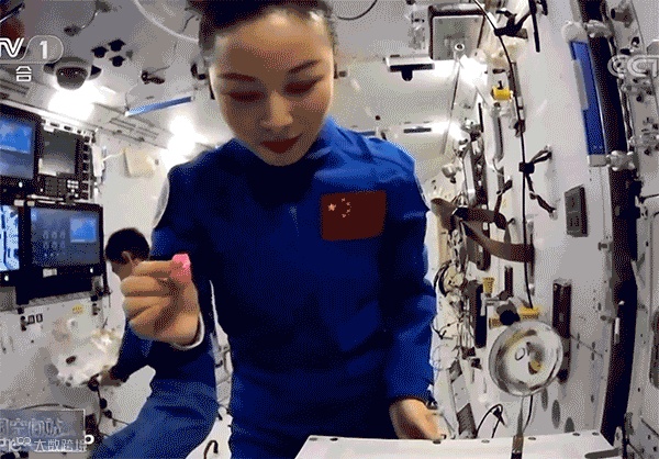 王亚平展示冰箱里的苹果