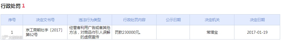 此外,企盾宝资料还显示,在2017年1月该公司因虚假宣传被北京市朝阳区市场监督管理局处罚,共计罚款23万元。