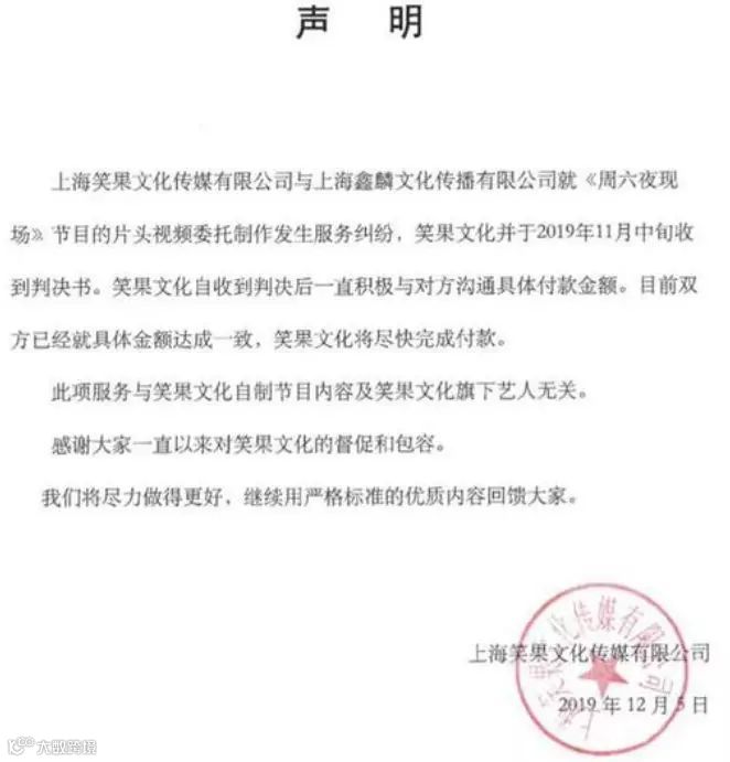 爆款节目出品方被纳入“被执行人”,这样的反差使得该消息不胫而走,热度最高时曾达到新浪微博热搜榜第三位。在消息传开后,笑果文化第一时间发布声明称,公司在收到判决后一直积极与对方沟通具体付款金额,目前双方已经就具体金额达成一致,将尽快完成付款。网络“催债”效率之高可见一斑。
