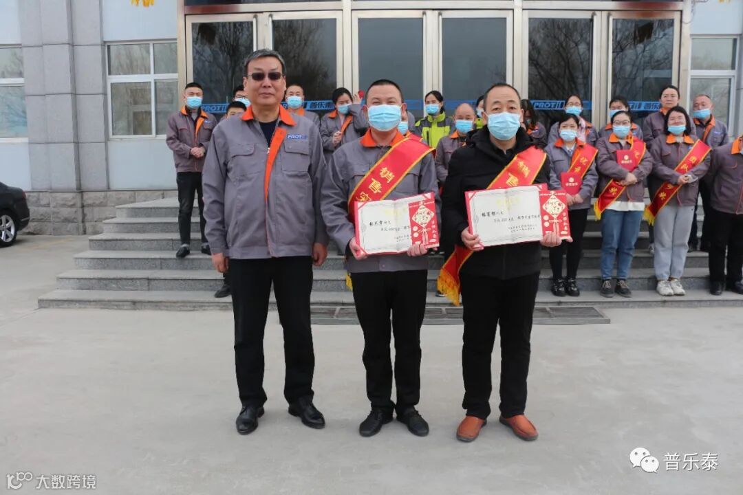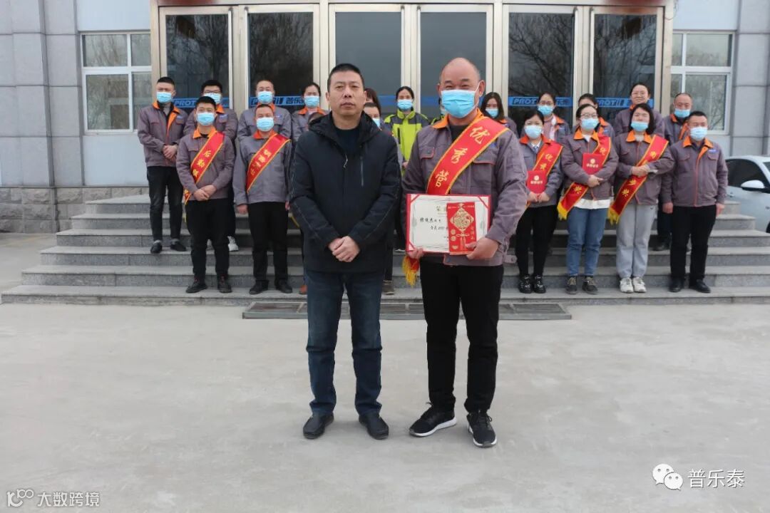 为响应政府疫情防控相关要求,避免多人聚集,河南普乐泰2020年度评优评先表彰仪式于2月5日上午分批次分地点隆重举行,公司总经理冯保奎、副总经理郑国旺、副总经理王振宇、财务总监魏林、行政人事部经理王文杰及各部门主管领导参与了本次表彰。