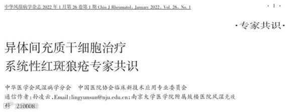 2022年1月,《中华风湿病学》杂志第26卷第1期发布了《异体间充质干细胞干预系统性红斑狼疮专家共识》,为间充质干细胞在红斑狼疮干预中的应用提供了权威依据。