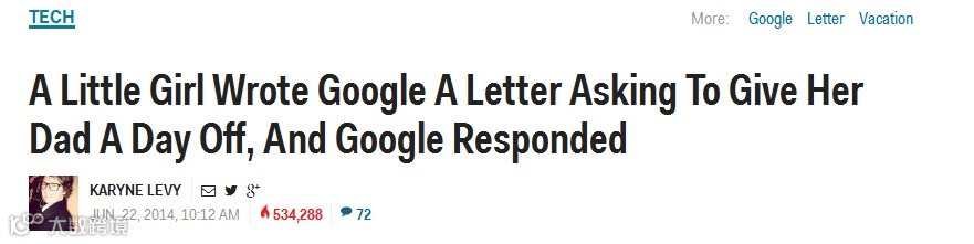 1.标题很重要:小女孩,Google大公司,写信,回应几个关键词组合,让用户有点击和分享的欲望。
