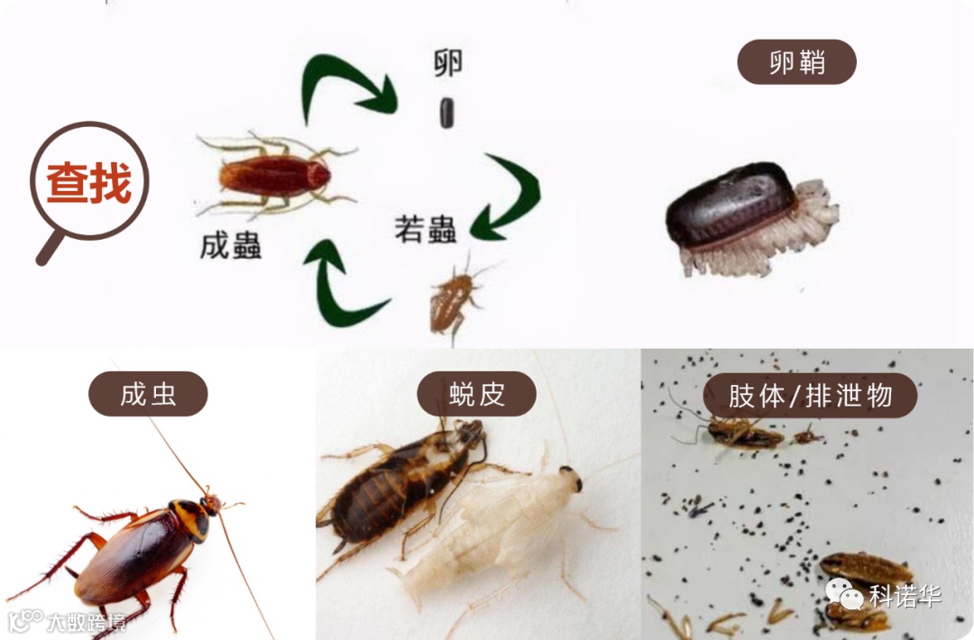 首先检查蟑螂活动的痕迹 ,蟑螂是夜行虫,所以通常需在晚上有目的地翻箱倒柜地搜查躲藏在橱柜中的蟑螂痕迹。