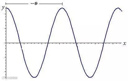 一般来说,抬腿迈出一步的时候,加速度是最大的。我们把它放到一个坐标轴上,加速度的变化看起来就像一个cos波形。