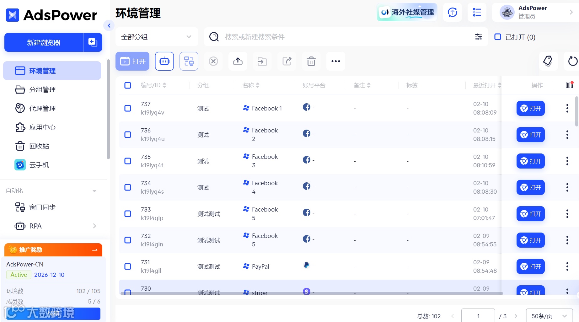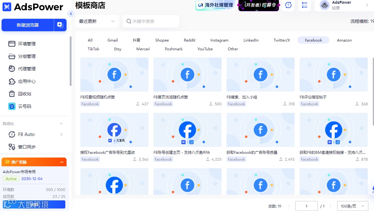 所以可以借助 AdsPower 智能体浏览器来构建安全稳定的浏览器环境,AdsPower 能为每个 Facebook 账号打造完全独立的浏览器指纹环境,相当于每个账号都拥有专属的设备和独立 IP,彻底杜绝多账号之间的关联风险。不管是批量注册新号,还是日常管理多个老号,都能保障每个账号的环境纯净稳定,大幅降低封号概率。