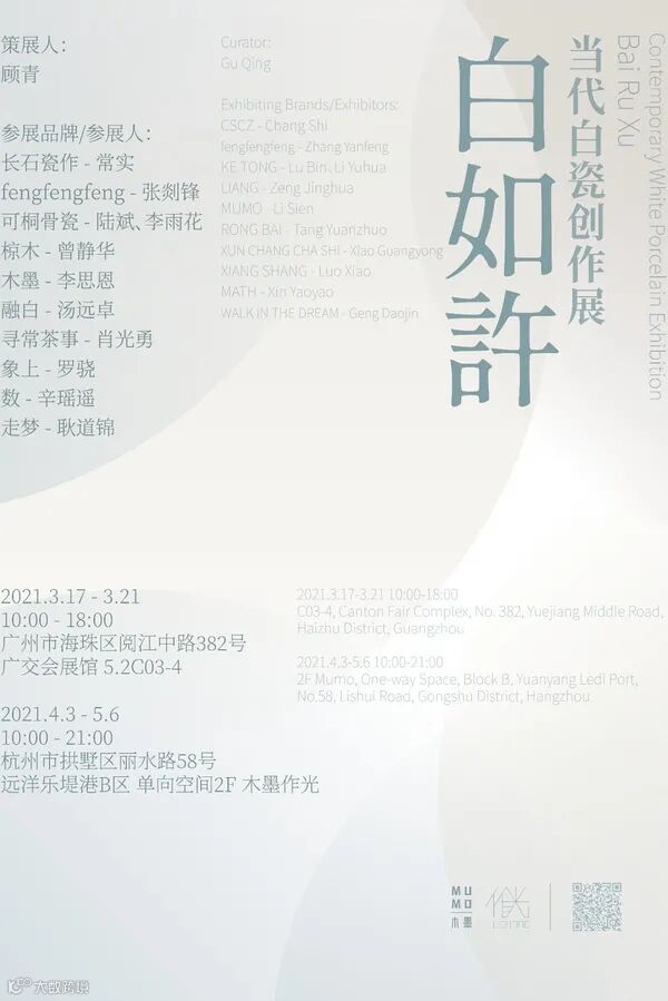 本次展览从材料特性出发,中国古代出产白瓷器物的重要窑口为基点,也将作为西方发明瓷种的骨瓷纳入坐标体系中,古往今来,东西对话,在材料特性和传统工艺的基础之上,专注于当代制器的探索。