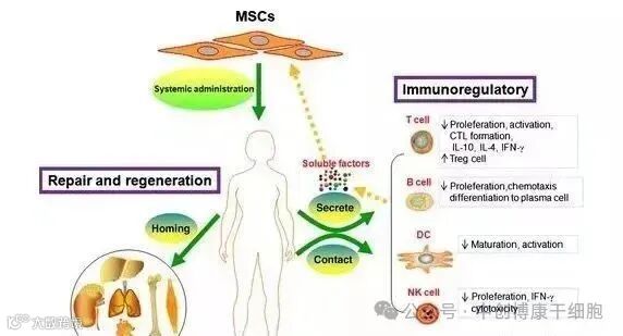 ▲MSC对多种活性淋巴细胞有免疫调节作用