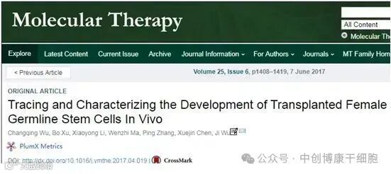 2017年,我国研究人员在美国《分子治疗》杂志上报告称,动物试验显示,脐带间充质干细胞有望安全地修复卵巢早衰。最近人类临床试验的成功案例再次证实,脐带间充质干细胞(UCMSCs)修复卵巢早衰具有十分广阔的前景,能明显提高卵巢储备能力,细胞的增殖和生育能力。