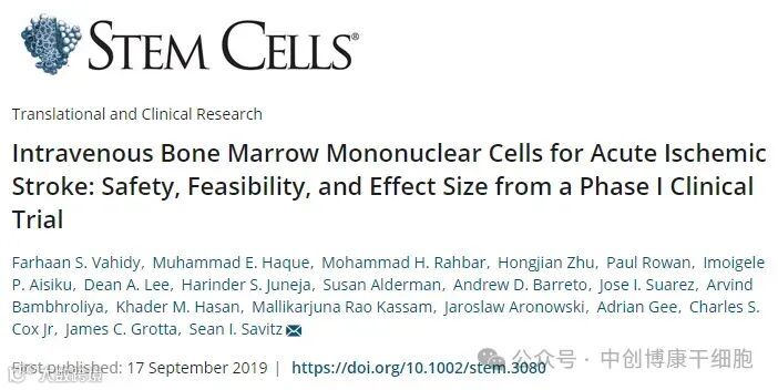 斯坦福大学的一项研究:Sonia Coontz在31岁时遭受了脑部损伤,参加一项临床试验利用来自供体的成体干细胞直接靶向使用到中风部位附近的大脑区域。干细胞修复后的几个小时内,该项研究的其他患者也发生了惊人的改善……2019年9月17日,发表在《STEM CELLS》上的一项I期扩展试验结果首次证明了早期使用骨髓单个核细胞(MNCs)修复患有急性缺血性脑卒中的人是安全的和可行的。