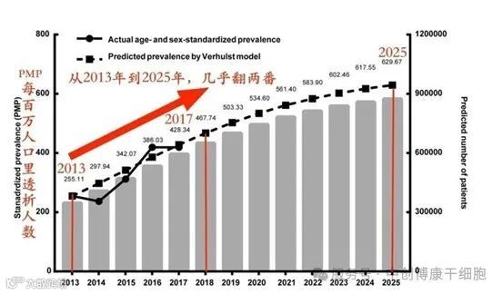 全球约有 9.1% 的成年人患有慢性肾脏病(CKD),其中 18.97% 的病例集中在中国,每年新增终末期肾衰竭患者超过 100万例。这些患者中,60% 因糖尿病和高血压导致肾功能不可逆损伤,最终只能依赖透析或肾移植维持生命。然而,透析的并发症(如感染、心血管疾病)使患者五年生存率不足 60%,而肾移植供体短缺导致仅有 1/10 的患者能获得手术机会。这种困境正在被一项颠覆性技术打破——干细胞治疗,它不仅让肾功能修复成为可能,更让患者重获“自主生活”的希望。